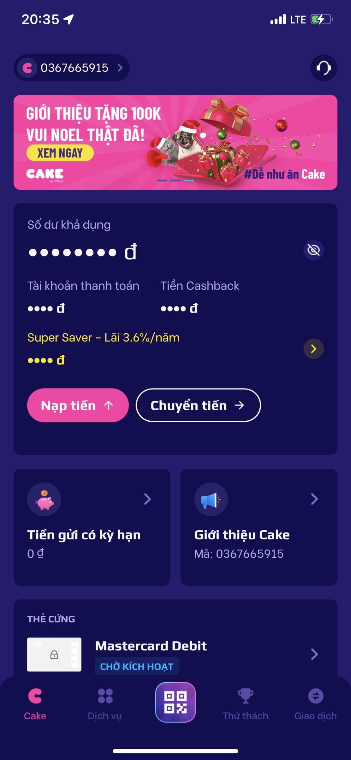 Đầu tiên là bạn phải tải app Cake trên CH Play cho Adnroid và App store cho IOS qua link: https://cakevn.me/HHDV/b37baee8 . Đăng ký như bình thường và phần mã giới thiệu chưa có thì bạn có thể nhập mã giới thiệu đễ ủng hộ mình: 0367665915.