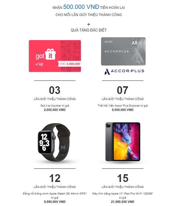 Người giới thiệu thành công 5 lượt nhận thêm 100.000VND.