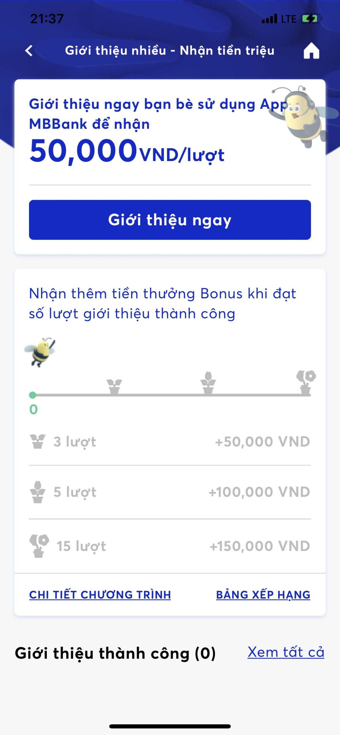 Người giới thiệu thành công 3 lượt nhận thêm 50.000VND.