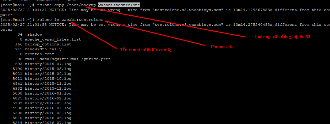 SHELL=/bin/bash PATH=/usr/local/sbin:/usr/local/bin:/sbin:/bin:/usr/sbin:/usr/bin * * * * * /bin/bash -c "rclone sync --progress <Folder_backup> <ten-remote>:<ten-buckets> -v --log-file=<duong-dan-log>"
