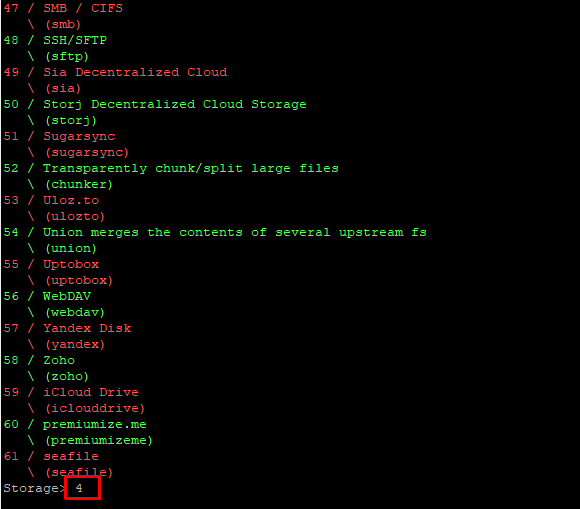 rclone config: cấu hình kết với các dịch vụ lưu trữ đám mây.