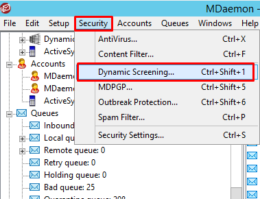 Chọn Security > Dynamic Screening