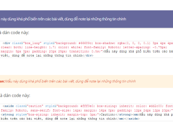 <div class="box_luuy" style="background: #66689c; box-shadow: rgba(0, 0, 0, 0.1) 3px 4px 4px; clear: both; line-height: 1.7; color: white; font-family: Roboto; letter-spacing: -0.75px; margin: 5px 0px; padding: 20px 25px; transition: 0.5s;">Mẫu này dùng khá phổ biến trên các bài viết, dùng đễ note lại những thông tin chính</div>
