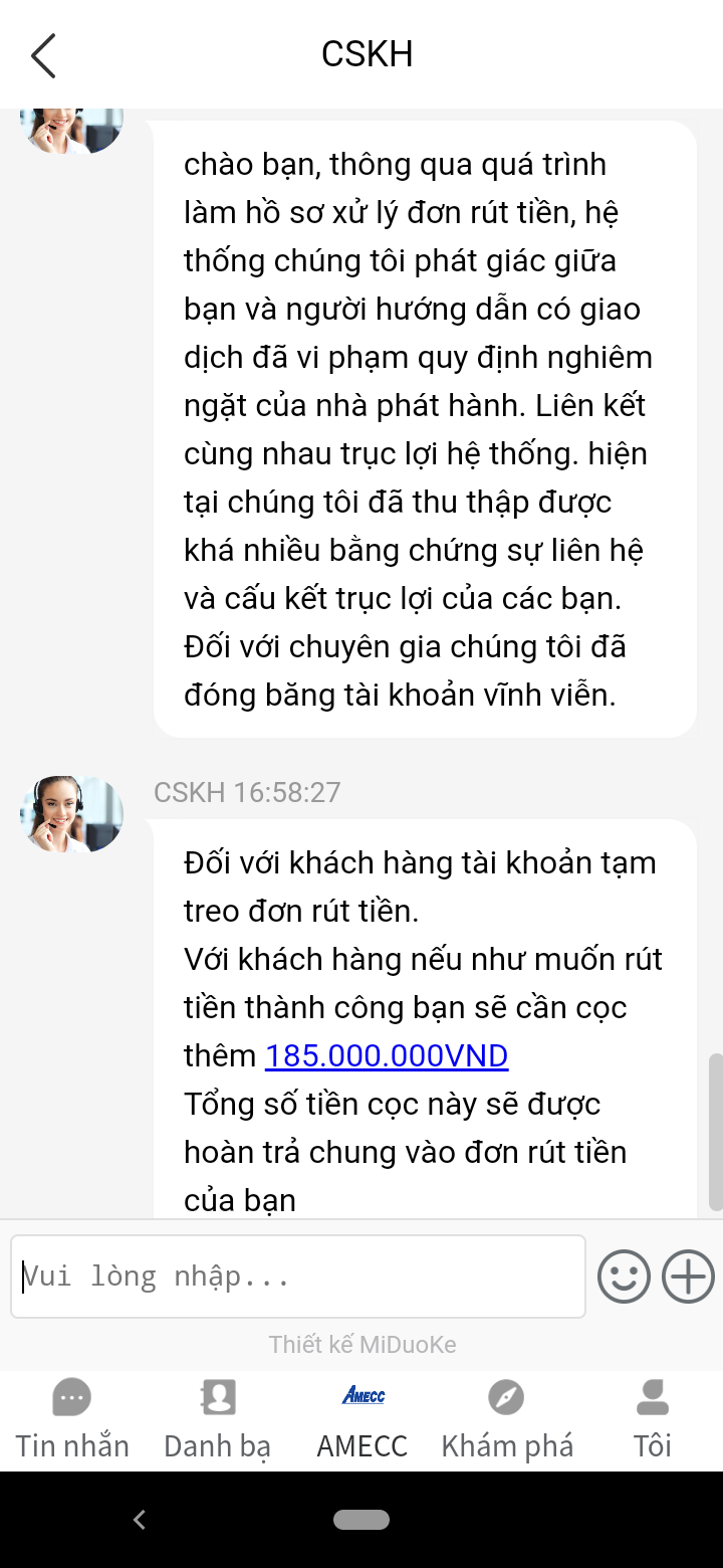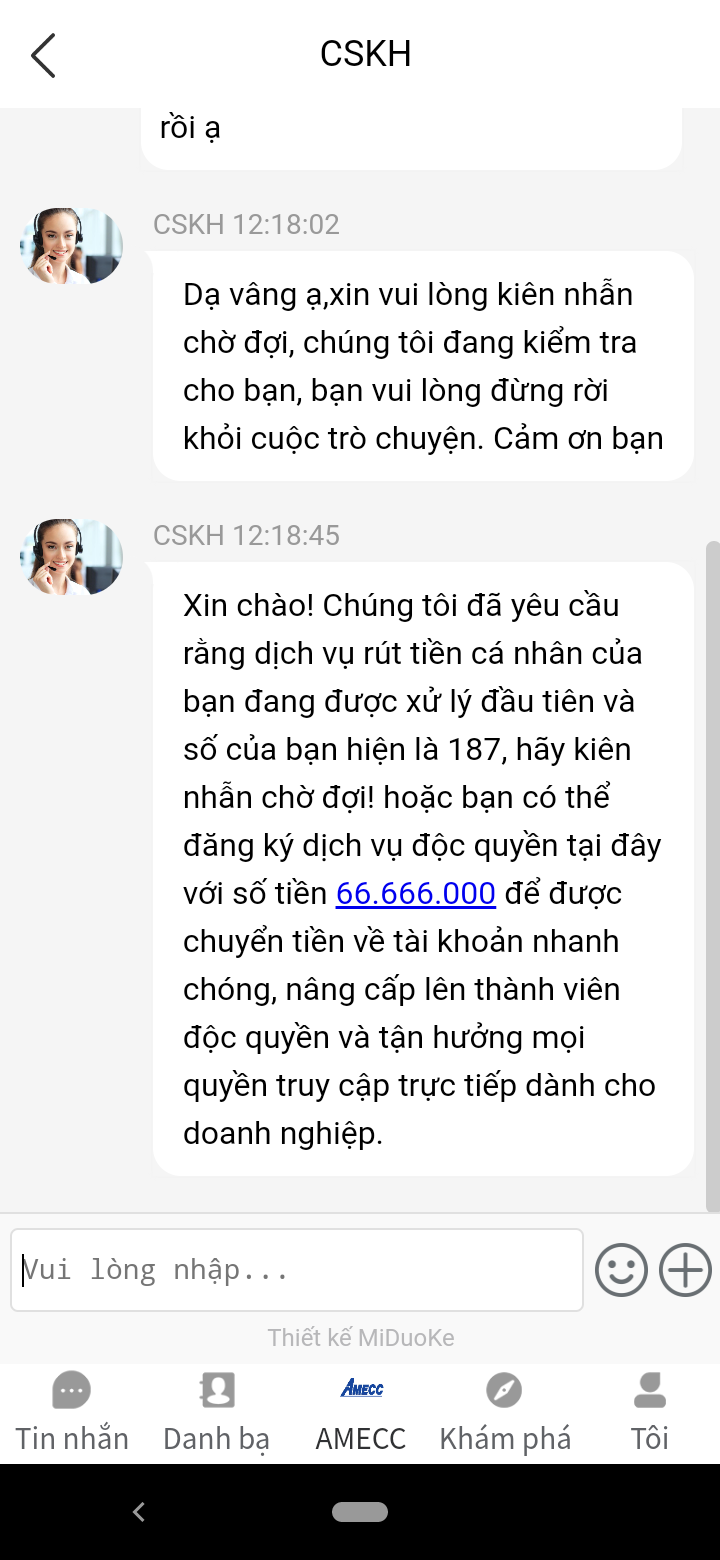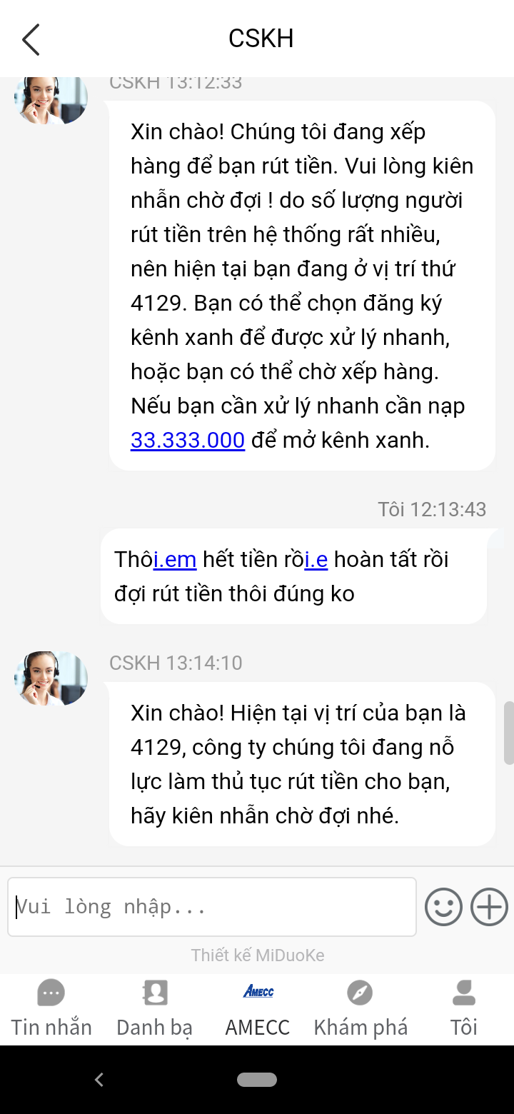 - Kiếm tiền bằng việc đặt lệnh như chứng khoán bitcoin: Các cá nhân này sẽ hướng dẫn bạn cài app, hướng dẫn nạp tiền vào app. Những lần đầu bạn sợ nên nạp ít hoặc không nạp, thì họ đều có cách đễ moi tiền bạn cả. Có thể họ cho bạn free bao nhiêu đô la hoặc nạp ít đễ chơi thử. Thường thì những cách kiếm tiền này sẽ có người cho lệnh đễ đặt theo tỉ lệ trúng gần như rất cao. Sau khi thắng những lần đầu bạn có thể rút tiền ra được có thể 1 hoặc 2-3 lần với số tiền khá lớn. Làm cho bạn có niềm tin rằng app này có thể chơi thắng được, rút được và bắt đầu chơi mạnh hơn. Sau khi bạn thắng được số tiền vài trăm triệu hiển thị trên app, thì bạn bắt đầu rút tiền gặp trục trặc. Đầu tiên nó sẽ thông báo rằng bạn đang vi phạm gì đó hoặc sai gì đó. Giờ muốn rút tiền thì phải nạp vài chục triệu vào và cam kết số tiền này sẽ về cùng số tiền rút về. Do số tiền vài chục triệu hoặc vài trăm triệu quá lớn nên người chơi sẳn sàng liều mạng đễ nạp vào. Nhưng kết quả trả về là chờ đợi, sau đó lại sai hay vi phạm chính sách gì đó rồi lại bắt nạp vào tới khi số tiền lên cao ngất ngưỡng. Lúc này người chơi mới ngỡ ngàng biết mình bị lừa, nhưng thông tin về app, địa chỉ công ty, người quản lý người chơi đều mờ tịt.
