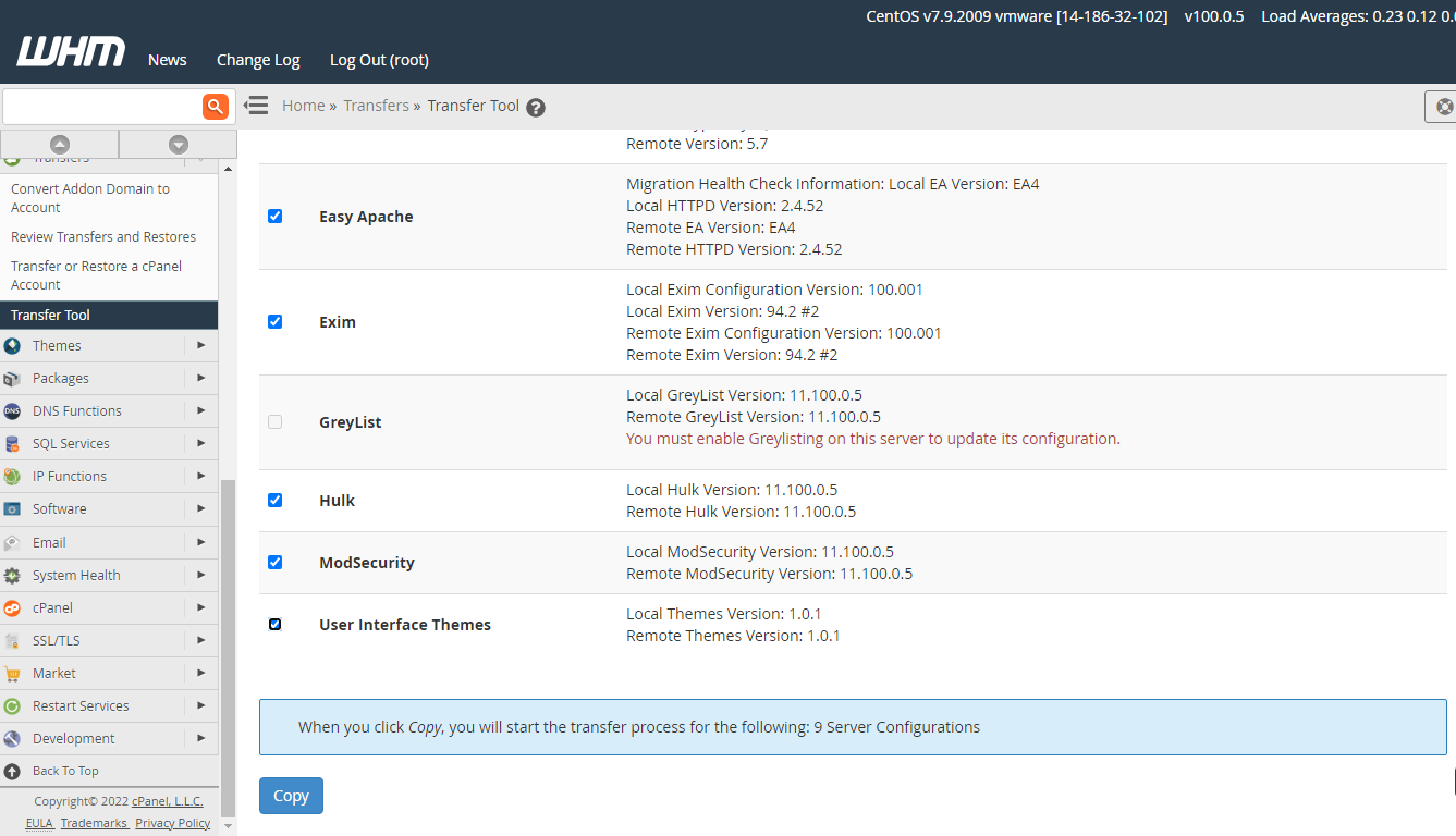Từ máy chủ WHM1 vào Home >> Tranfers >> Tranfer Tools >> Scan Remote Server